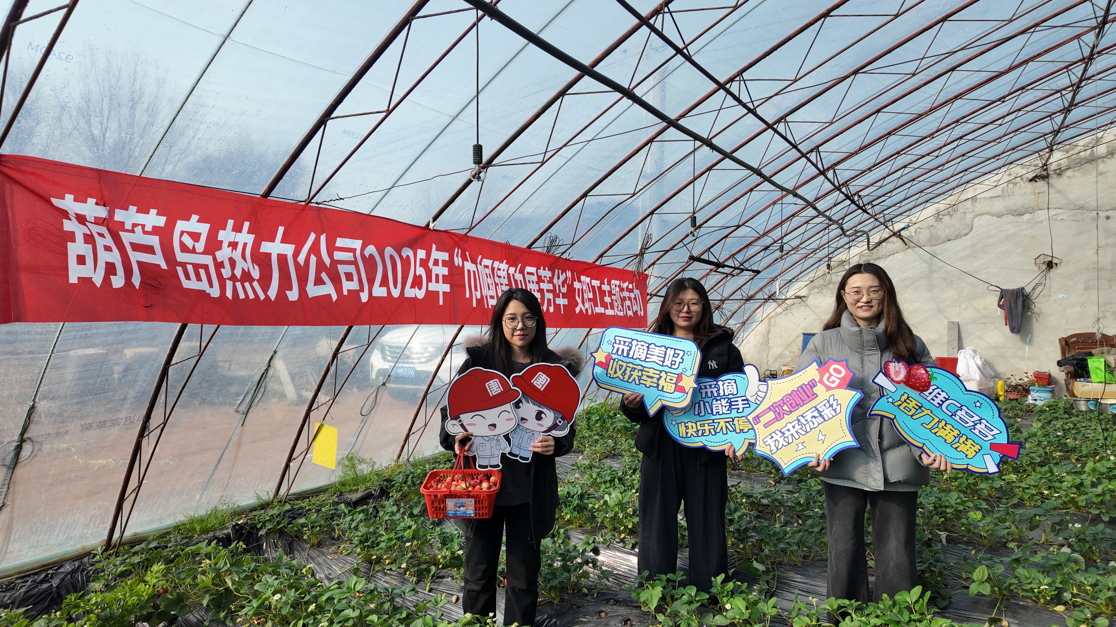 葫蘆島熱力公司組織開展“與春相約 莓好同行”主題采摘活動。女職工們手持采摘籃穿梭在田壟間,歡聲笑語在暖意融融的溫室中流淌。(劉庚?王迪?)