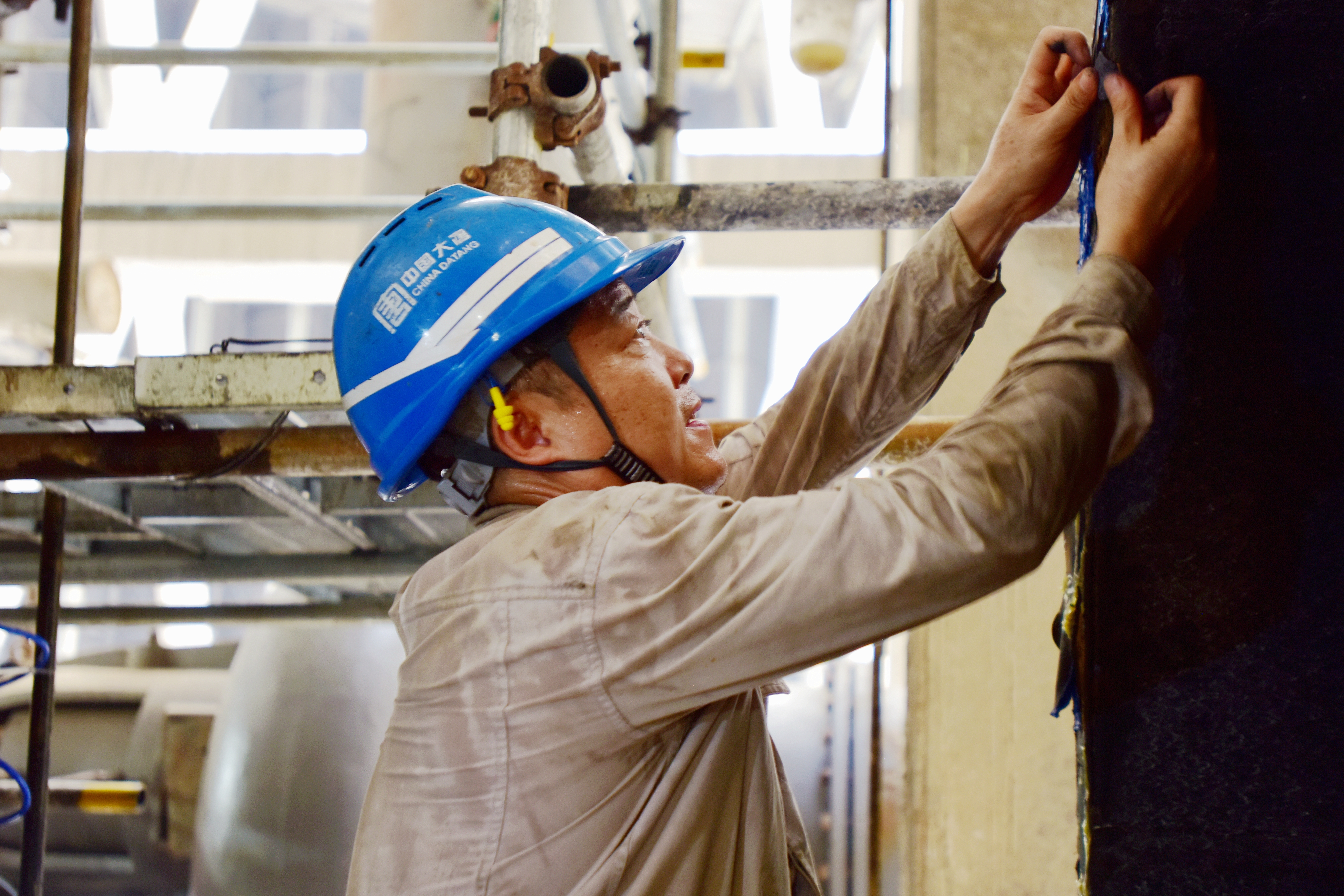 周六的陽光炙熱,秦嶺發(fā)電公司7號間冷塔內(nèi)溫度高得令人難耐。