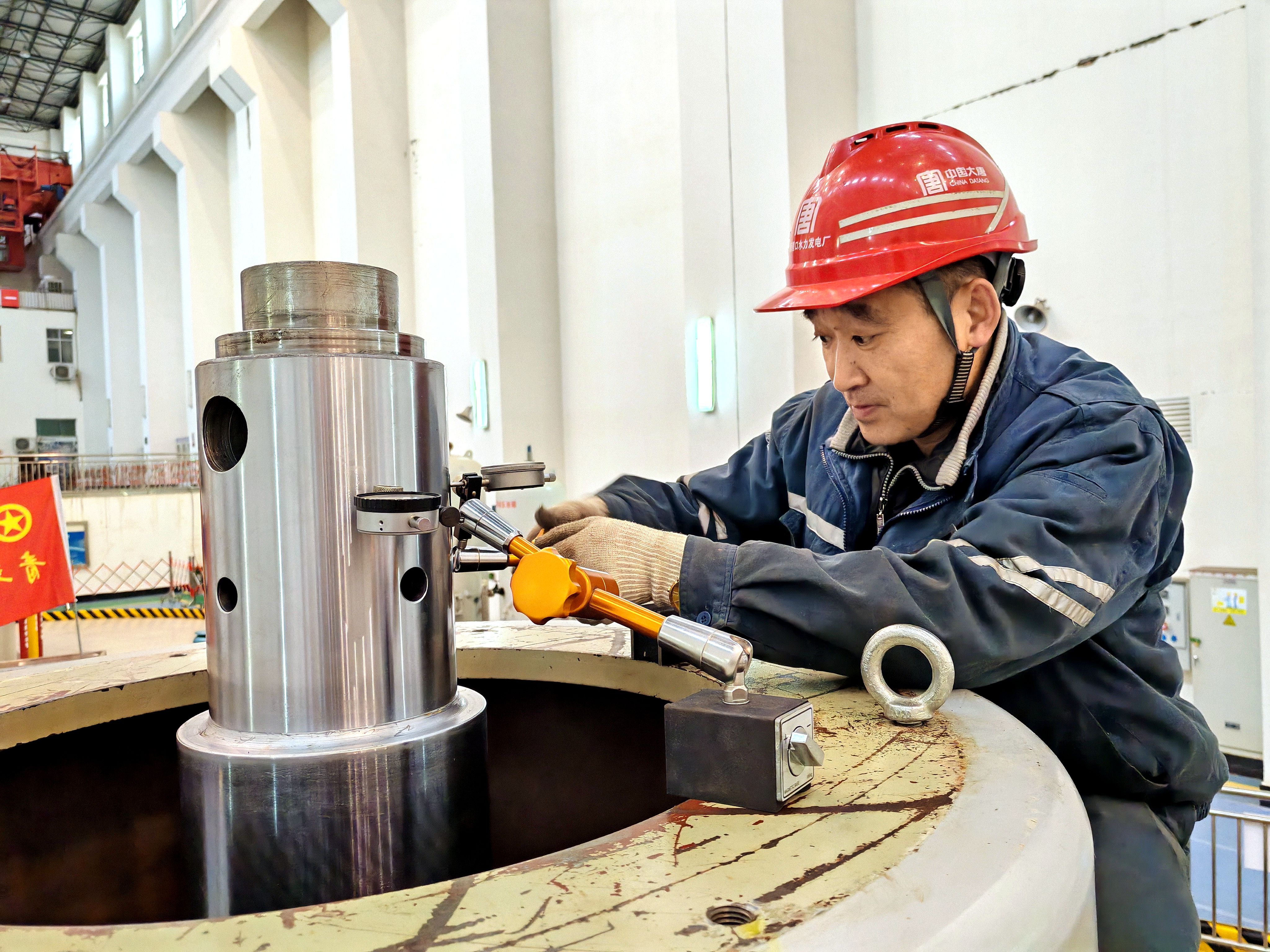 碧口水電廠麒麟寺水電站3號機A修現(xiàn)場,機械負責人李家勇下達盤車指令。隨著盤車裝置啟動,機組大軸緩慢轉(zhuǎn)動起來,機組各部位檢測工作緊張、有序開始。
