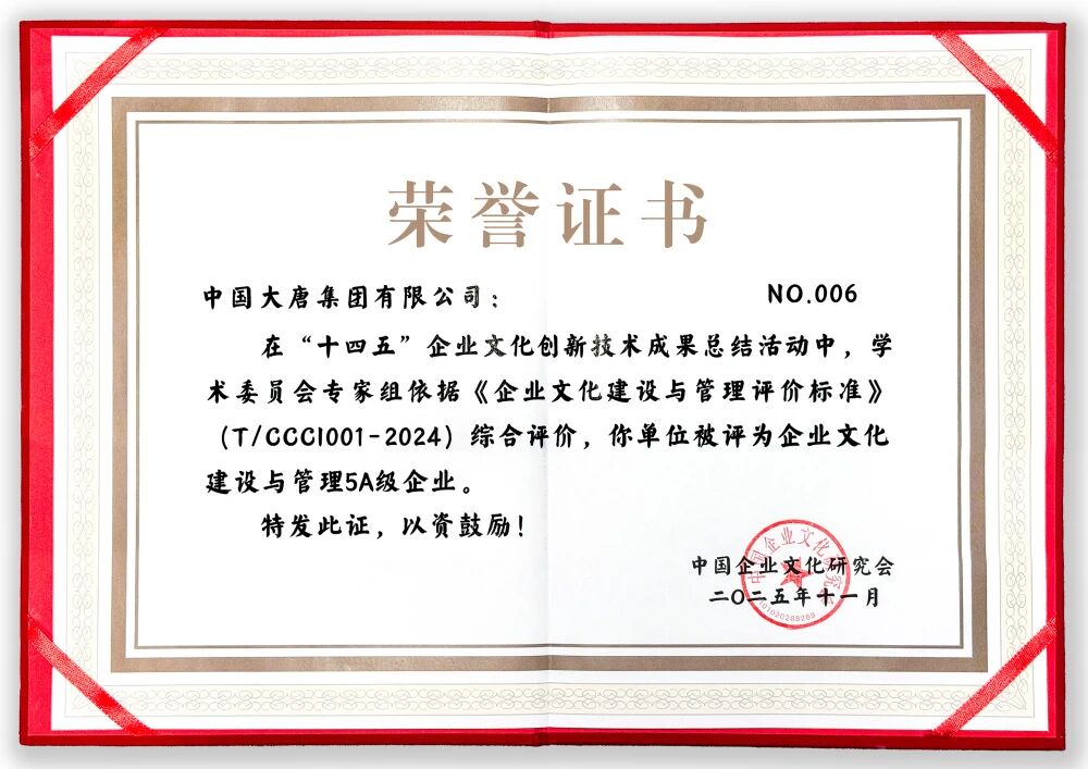 近期,中國(guó)企業(yè)文化研究會(huì)在第二十二屆中外企業(yè)文化峰會(huì)上發(fā)布了“十四五”企業(yè)文化建設(shè)與管理創(chuàng)新成果和2025年度企業(yè)文化課題研究成果,中國(guó)大唐集團(tuán)有限公司及系統(tǒng)單位斬獲多項(xiàng)榮譽(yù)。