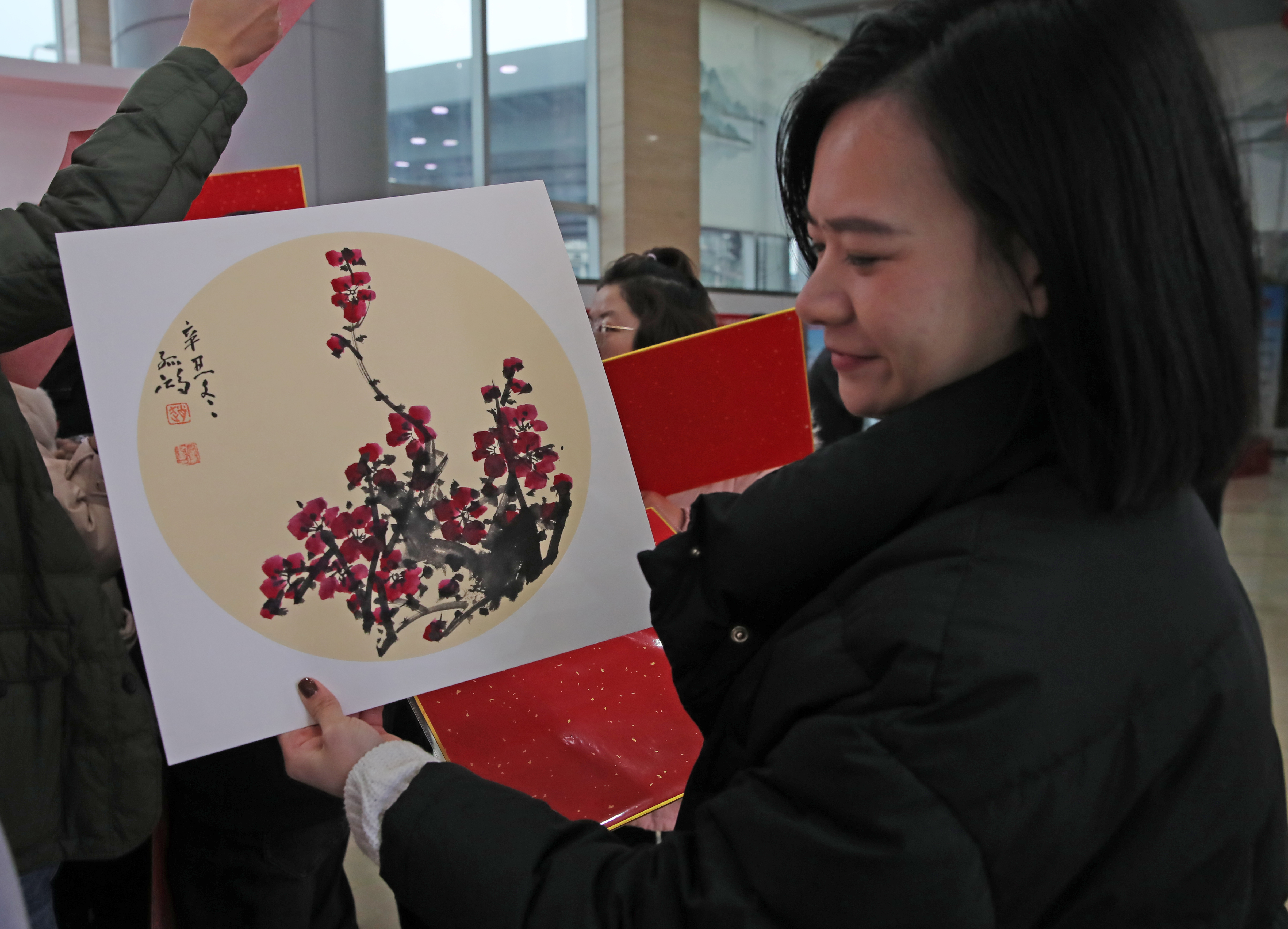 活動現場人頭攢動,長桌一字排開,四寶鋪就,翰墨飄香,老師們在現場揮毫潑墨,行云流水之間,一幅幅充滿新春祝福的大紅春聯頃刻誕生,大筆一揮之時,一幅幅字體各異、紅紅火火的“?!弊謩x那完成,揮毫潑墨之刻,一幅幅栩栩如生、清新典雅的畫作一揮而就,一幅幅富含新年祝愿、寓意新春吉祥的作品一一呈現。