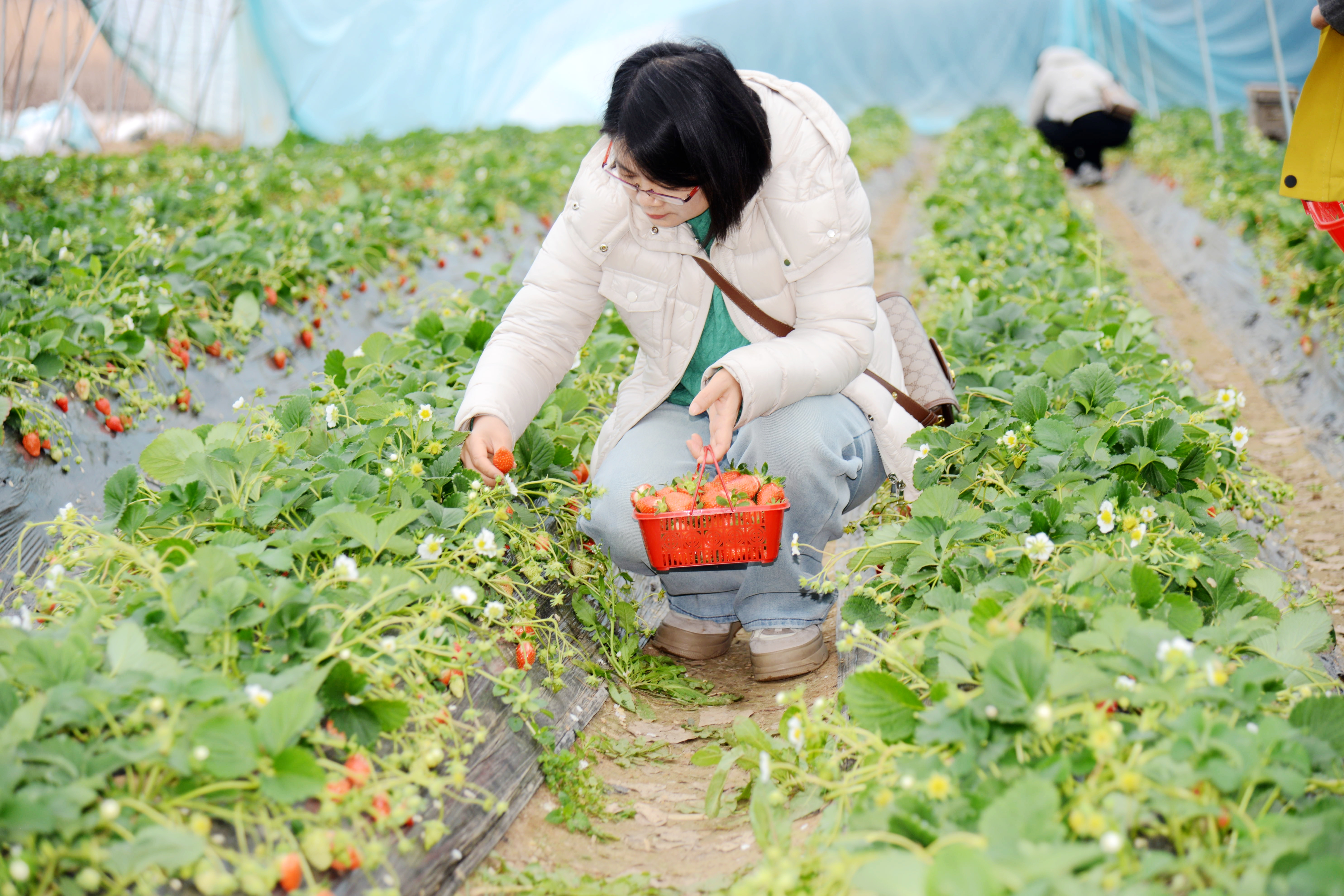 葫蘆島熱力公司組織開展“與春相約 莓好同行”主題采摘活動。女職工們手持采摘籃穿梭在田壟間,歡聲笑語在暖意融融的溫室中流淌。(劉庚?王迪?)