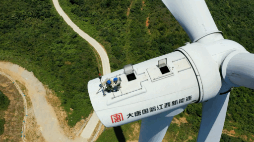 我招呼他們先把飯吃了,王鵬卻著急往風機輪轂里鉆,他說:“換完變槳電機再吃,另外兩個同事都還在里面等我呢。”我向狹小的通道內探了探頭,輪轂內的溫度竟然比機艙內的溫度還要高,測溫槍上顯示足足有50度。我看著三位大漢面面相覷,他們臉上豆大的汗珠在瑩瑩燈光的映照下愈發(fā)顯得耀眼。 1、2、3,1、2、3,他們憋紅著臉,合力將一百多斤的電機抬下,再用安全繩將電機掛好。更換完電機,他們癱坐在地上,笑著享用今天的午餐。青春就是如此:艱難困苦得以成長,汗流浹背得以成熟,理想信念得以團結。