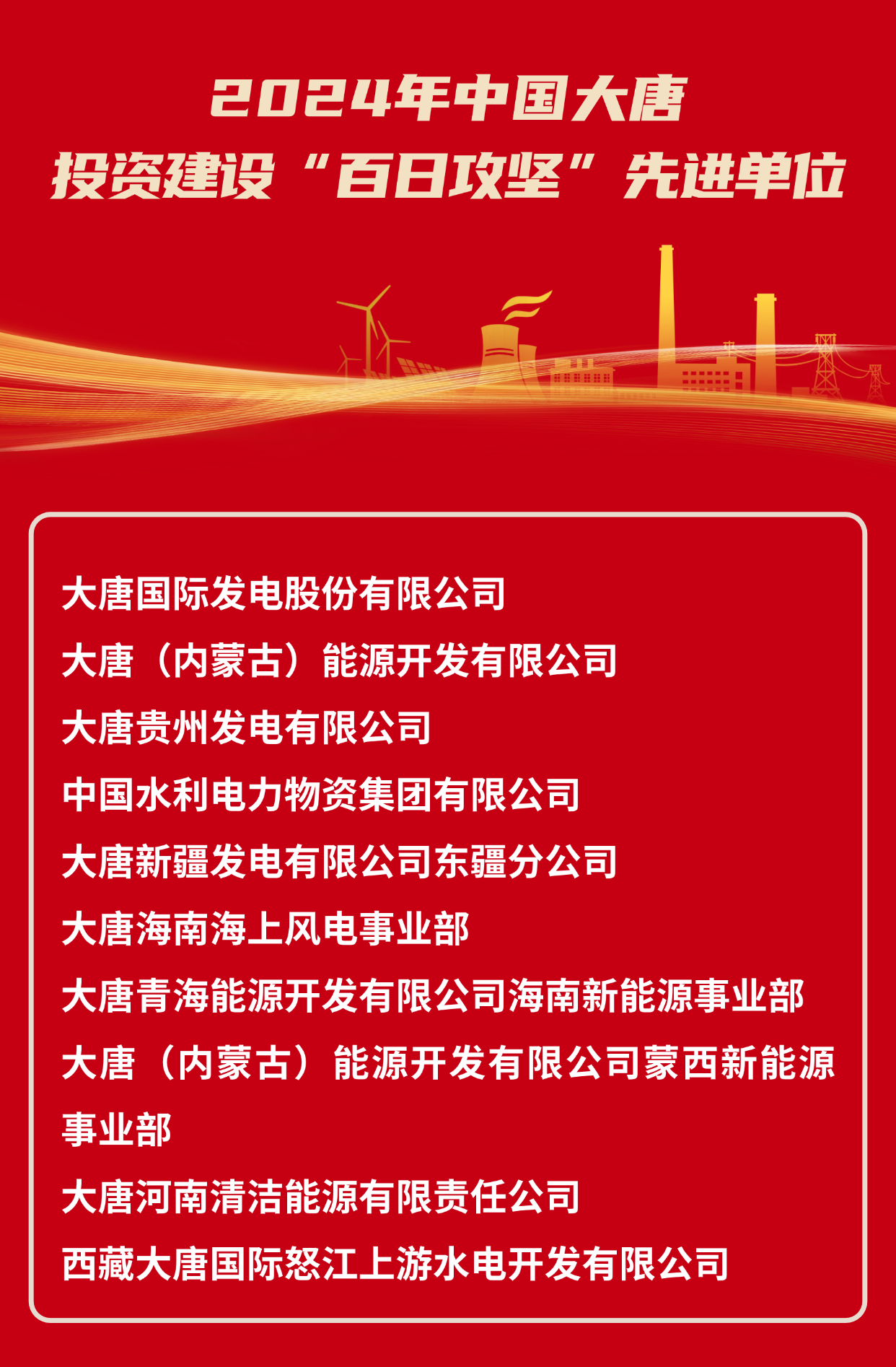 2024年中國大唐集團(tuán)有限公司投資建設(shè)“百日攻堅(jiān)”先進(jìn)單位